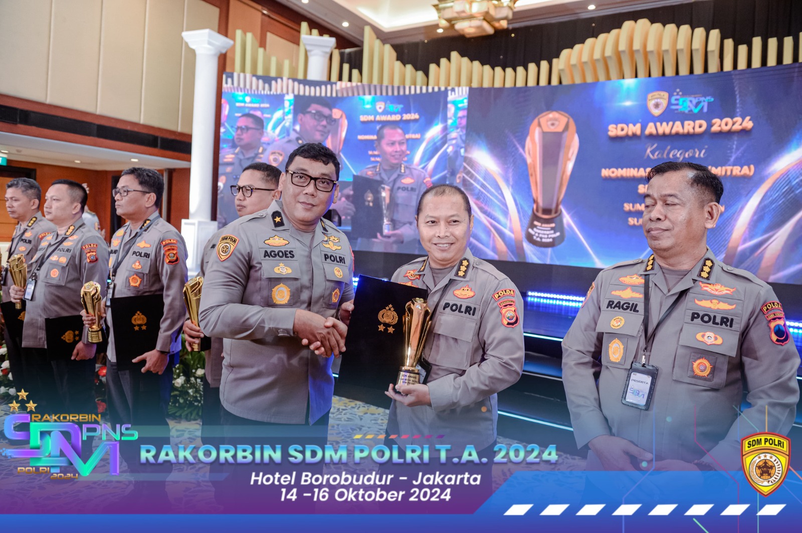 BENGKULU, DELITIMES.ID – Karo SDM Polda Bengkulu Kombes Pol Sih Harno, menerima penghargaan SSDM Award pada Rakorbin SDM Polri tahun
