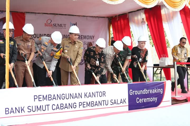 PAKPAK BHARAT, DELITIMES.ID – Pjs. Bupati Pakpak Bharat, Dr. Naslindo Sirait menghadiri Gorundbreaking Ceremony Pembangunan Kantor Bank Sumut Cabang Pembantu