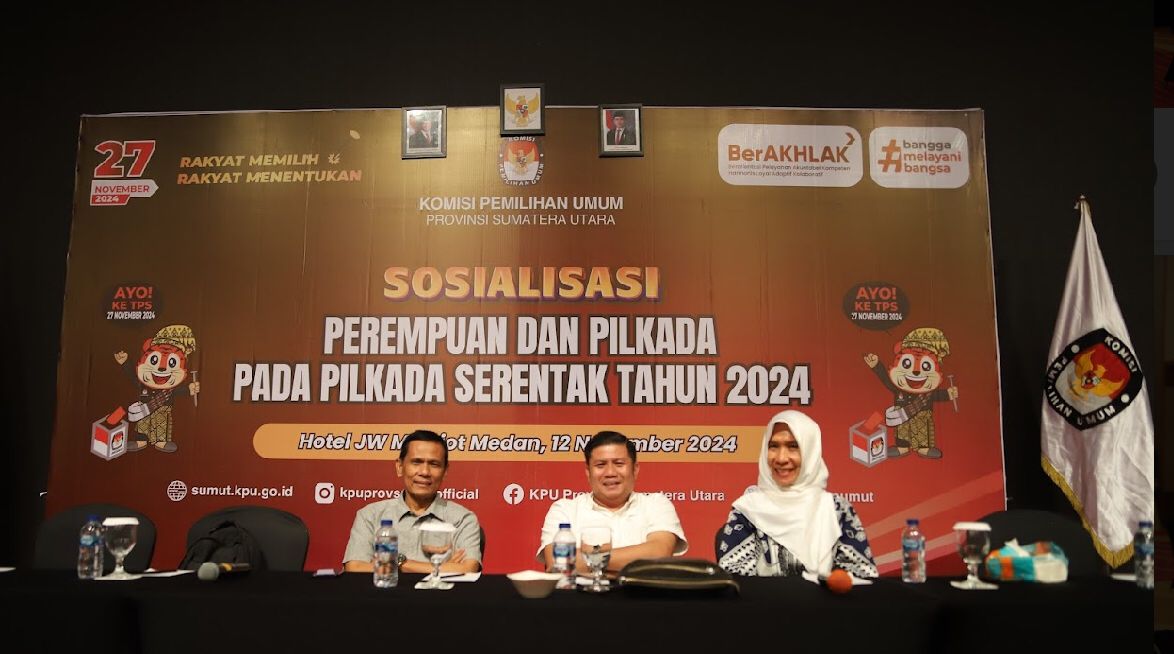MEDAN – KPU Provinsi Sumatera Utara menyelenggarakan sosialisasi perempuan dan Pilkada pada Pilkada Serentak Tahun 2024 di Hotel JW Marriot