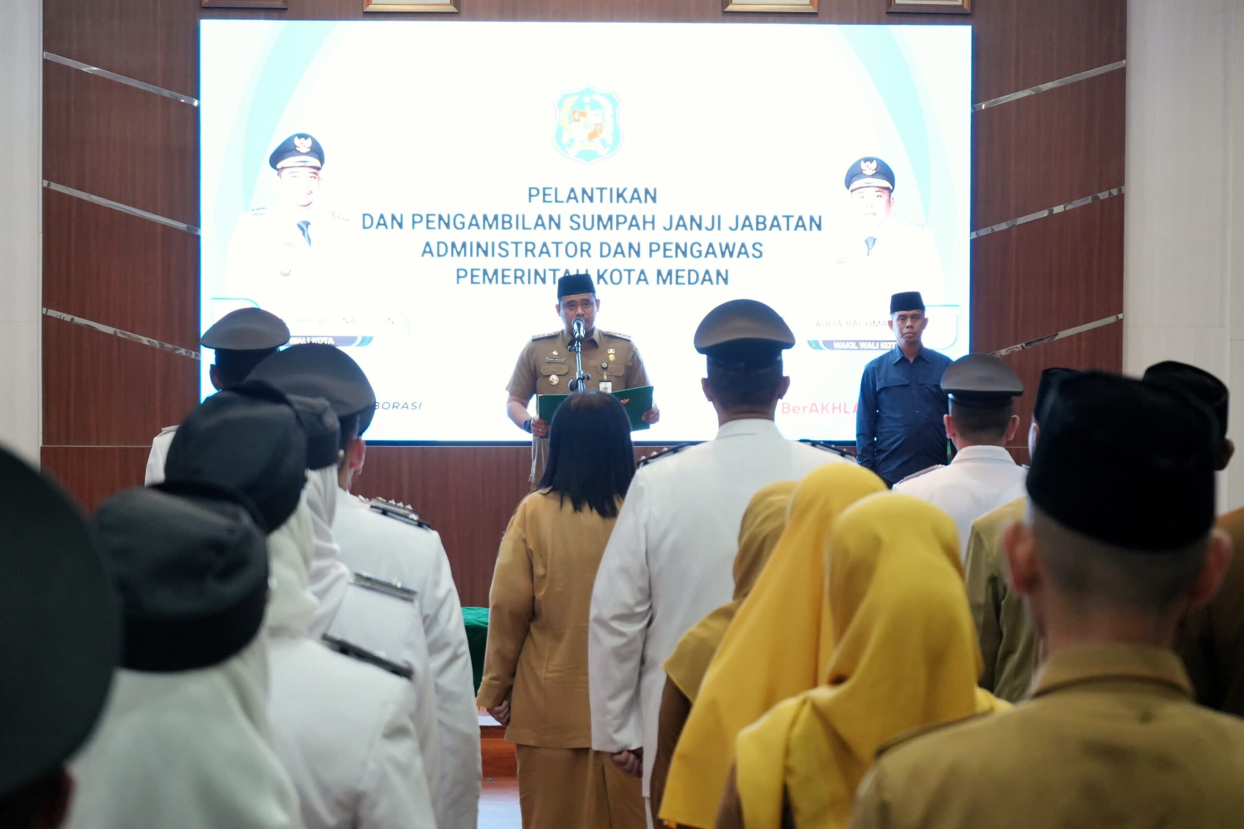 MEDAN – Wali Kota Medan Bobby Nasution melantik sebanyak 54 orang Pejabat Administrator dan Pengawas dilingkungan Pemko Medan, Senin (2/12)