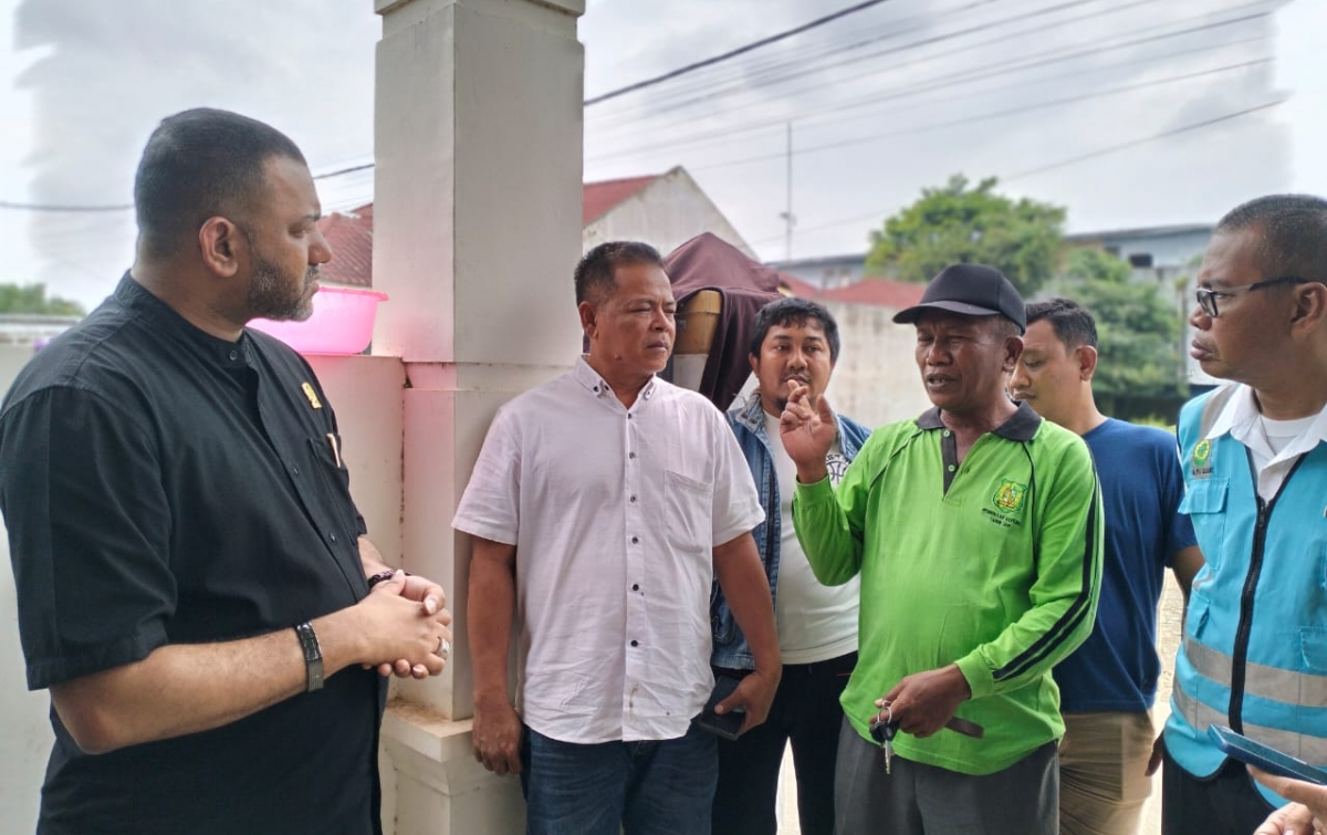 MEDAN – Anggota DPRD Kota Medan, Rommy Van Boy, mengunjungi wilayah terdampak banjir di Jalan Karya Jaya, Gang Eka Wali