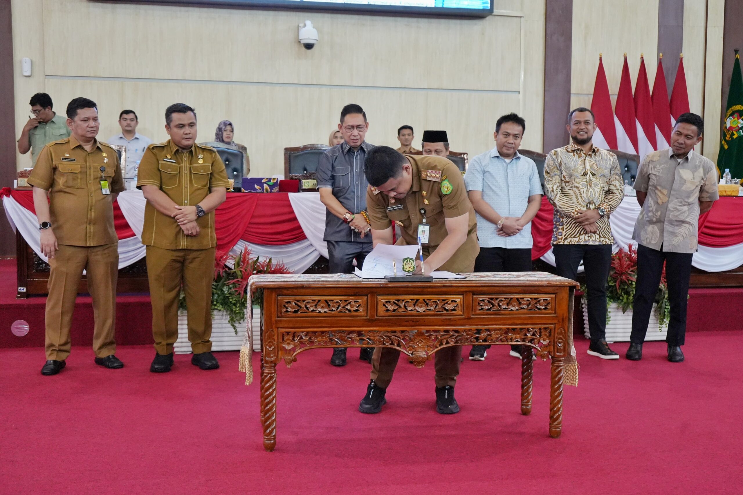 MEDAN – Wali Kota Medan, Bobby Nasution, bersama Pimpinan DPRD Kota Medan menandatangani kesepakatan mengenai Program Pembentukan Peraturan Daerah (Propemperda)