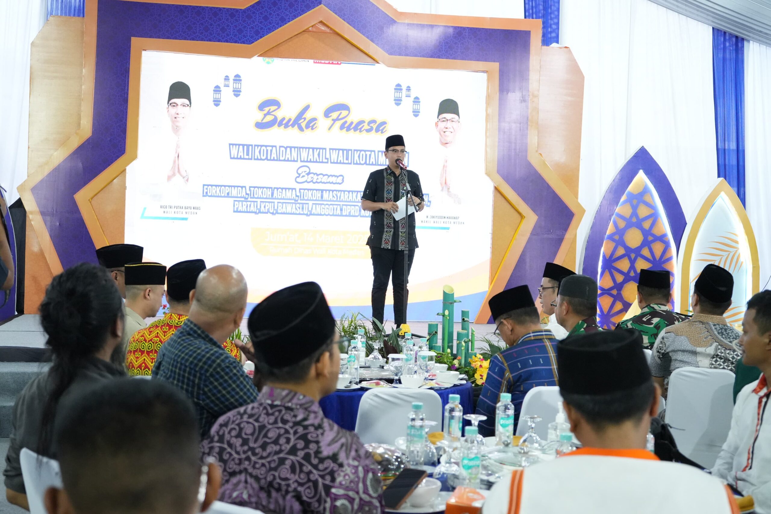 MEDAN – Wali Kota Medan, Rico Tri Putra Bayu Waas, mengadakan buka puasa bersama dengan seluruh pemangku kepentingan Kota Medan,