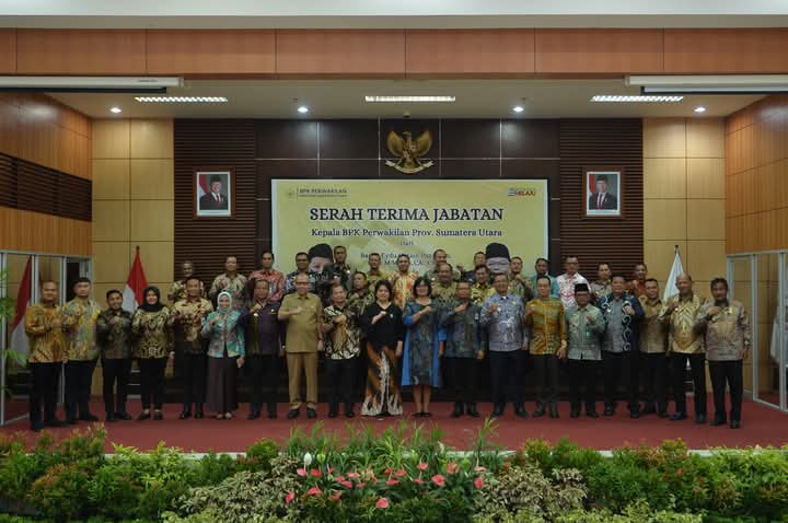 MEDAN, DELITIMES.ID – Bupati Pakpak Bharat, Franc Bernhard Tumanggor menghadiri serah terima jabatan Kepala Perwakilan Badan Pemeriksa Keuangan (BPK) Perwakilan