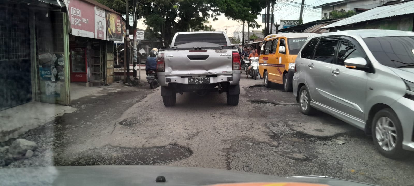 MEDAN – Kondisi jalan rusak di Jalan Pintu Air IV, Kelurahan Simalingkar B, Kecamatan Medan Tuntungan, dikeluhkan warga. Jalan penuh