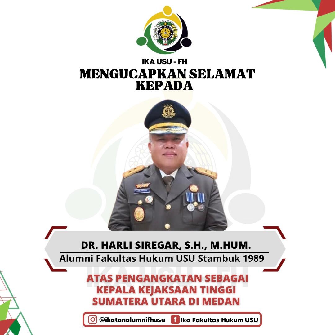 Medan-Alumni Fakultas Hukum Universitas Sumatera Utara berbanggga atas capaian karier yang diraih salah seorang alumninya, Dr. Harli Siregar, SH. M.Hum.