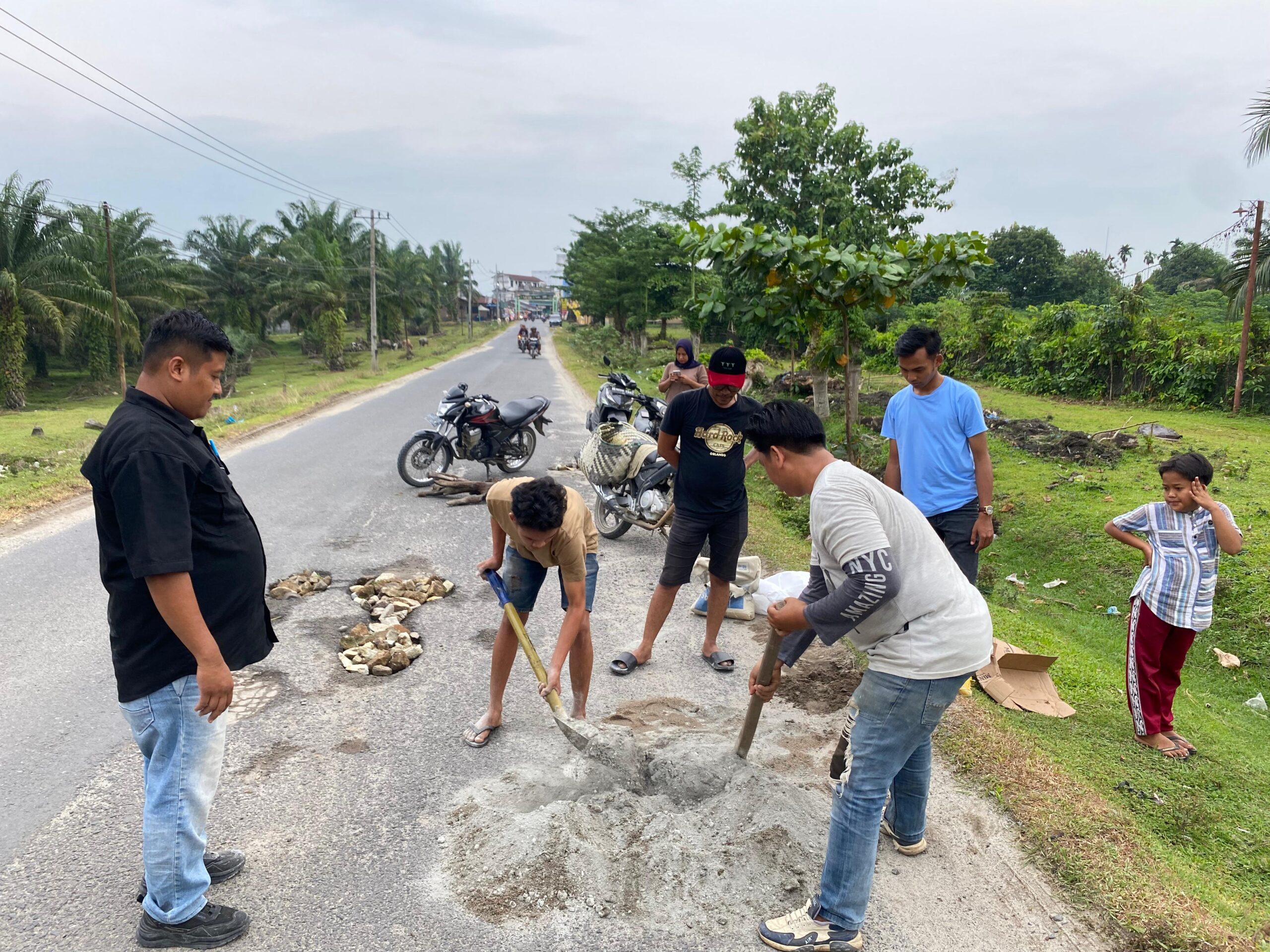 Peduli Keselamatan Berkendara, Karang Taruna Dolok Batu Nanggar Perbaiki Jalan Berlubang di Serbelawan