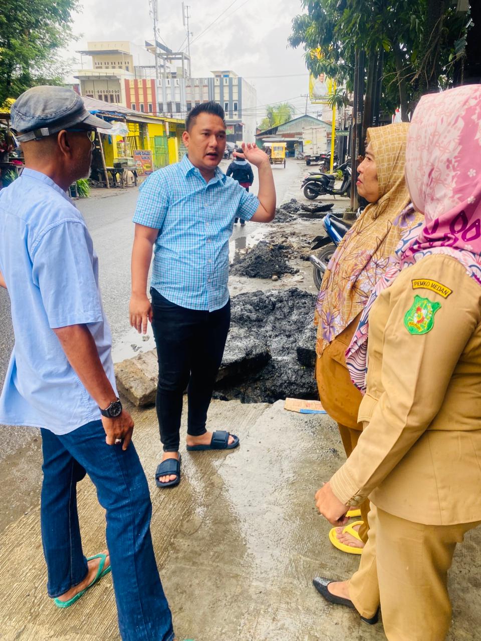 MEDAN, delitimes.id – Ketua Komisi I DPRD Kota Medan, Reza Pahlevi Lubis, S.Kom, melakukan peninjauan langsung ke lokasi drainase yang