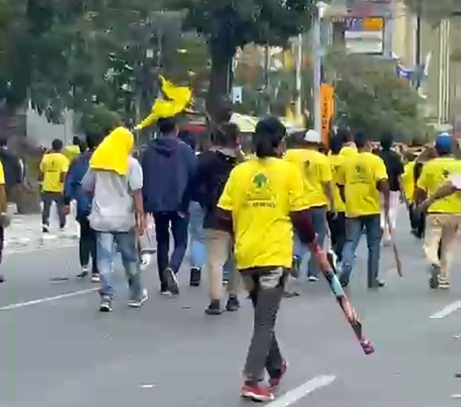 MEDAN, DELITIMES.ID – Aksi bringas sekelompok massa yang memakai baju kaos Golkar Medan, secara membabi-buta melakukan pelemparan batu dan mercon