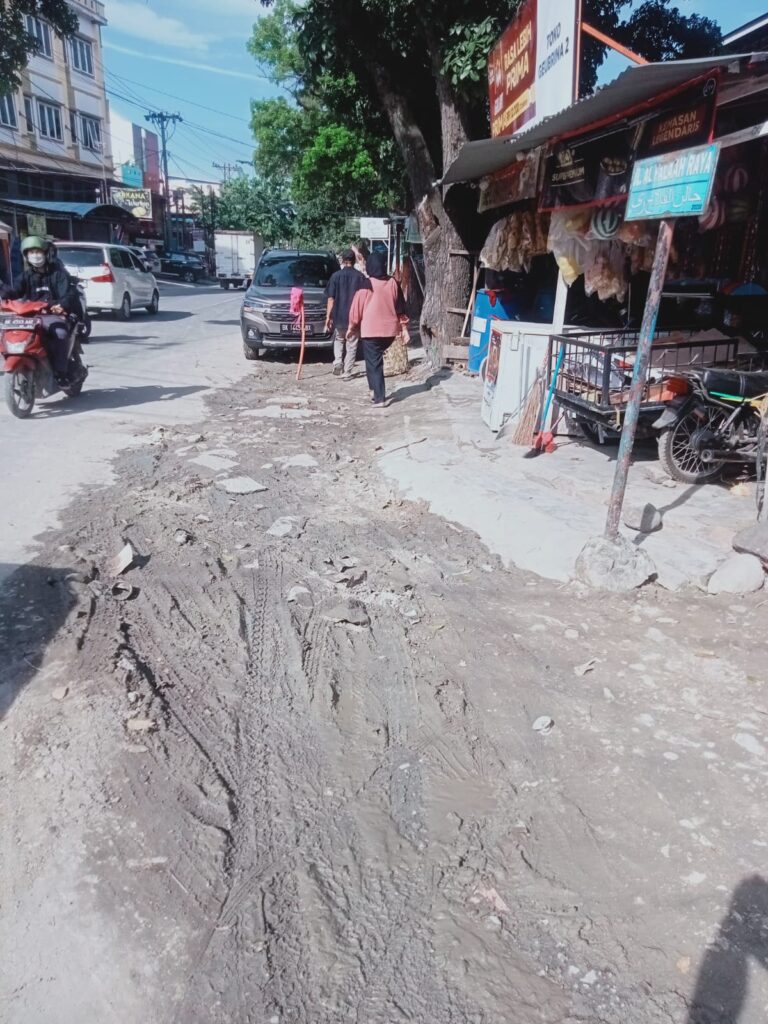 Pantauan wartawan di lokasi menunjukkan bahwa genangan lumpur akibat galian drainase di Jalan Alfalah Raya tersebut mengganggu aktivitas warga, terutama para pedagang yang terpaksa menggunakan triplek untuk menutupi genangan lumpur.