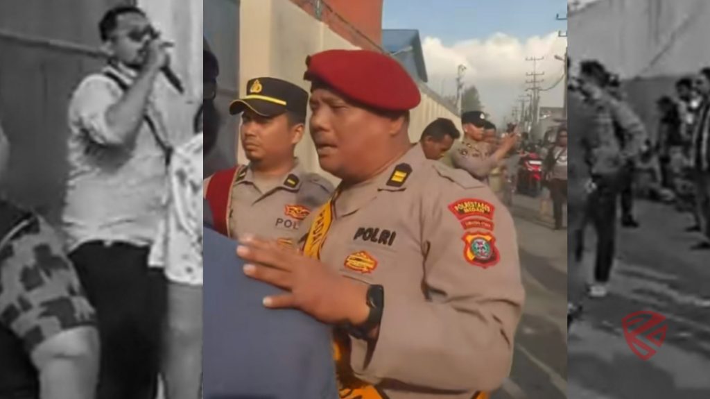 Dalam video yang beredar di media sosial, terlihat aparat kepolisian membentuk barisan pengamanan di depan gerbang perusahaan sembari berupaya menenangkan massa. IPTU Elia juga tampak berdialog dengan warga yang menghampirinya untuk menyampaikan tuntutan.