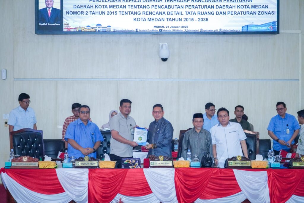 Hal tersebut disampaikan oleh Wali Kota Medan, Bobby Nasution, dalam Penjelasan Kepala Daerah terhadap Ranperda Kota Medan tentang Pencabutan Perda Kota Medan Nomor 2 Tahun 2015 tentang Rencana Detail Tata Ruang dan Peraturan Zonasi Kota Medan Tahun 2015-2035 di Gedung DPRD Medan, Selasa (21/1).