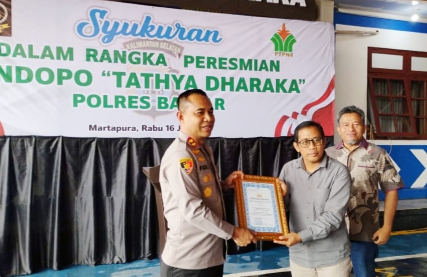 Dalam sambutannya, Kapolres Banjar menyampaikan apresiasi tinggi kepada PTPN Group, dalam hal ini PTPN IV Regional 5 Kebun Danau Salak atas kerja sama yang terjalin erat, termasuk kontribusi dalam pembangunan Pendopo Tathya Dharaka. Kegiatan berlangsung khidmat dan penuh keakraban. Acara diawali dengan doa bersama, dilanjutkan penandatanganan peresmian Pendopo Tathya Dharaka, penyerahan piagam penghargaan, serta ramah tamah dengan para tamu undangan.