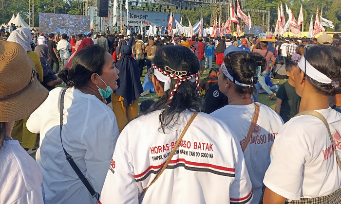 LUPUKPAKAM, DELITIMES.ID – Ribuan massa HBB (Horas Bangso Batak) meramaikan Konser Indonesia Maju Bersama Prabowo Gibran, di Stadion Baharuddin Siregar, Lubuk Pakam, Deli Serdang, Sumatera Utara, Rabu (7/2/2024).