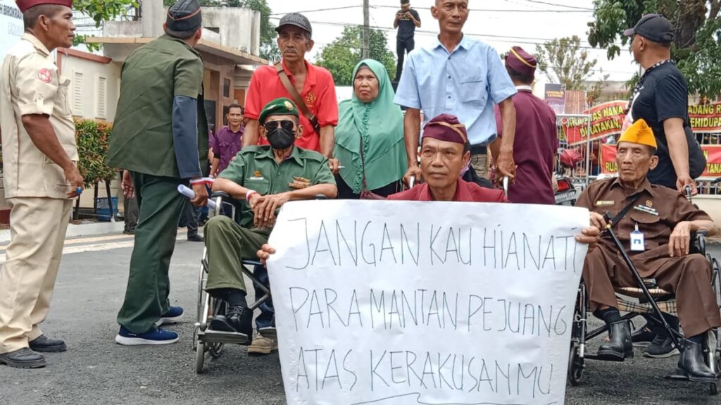 Dalam aksinya para lansia yang merupakan para pejuang yang sudah berjasa kepada dalam merebut kemerdekaan dan berjasa dalam merebut kemerdekaan mengingatkan kepada pemangku kebijakan “Jangan Kau Khianati Para Pejuang Atas Kerakusan”.