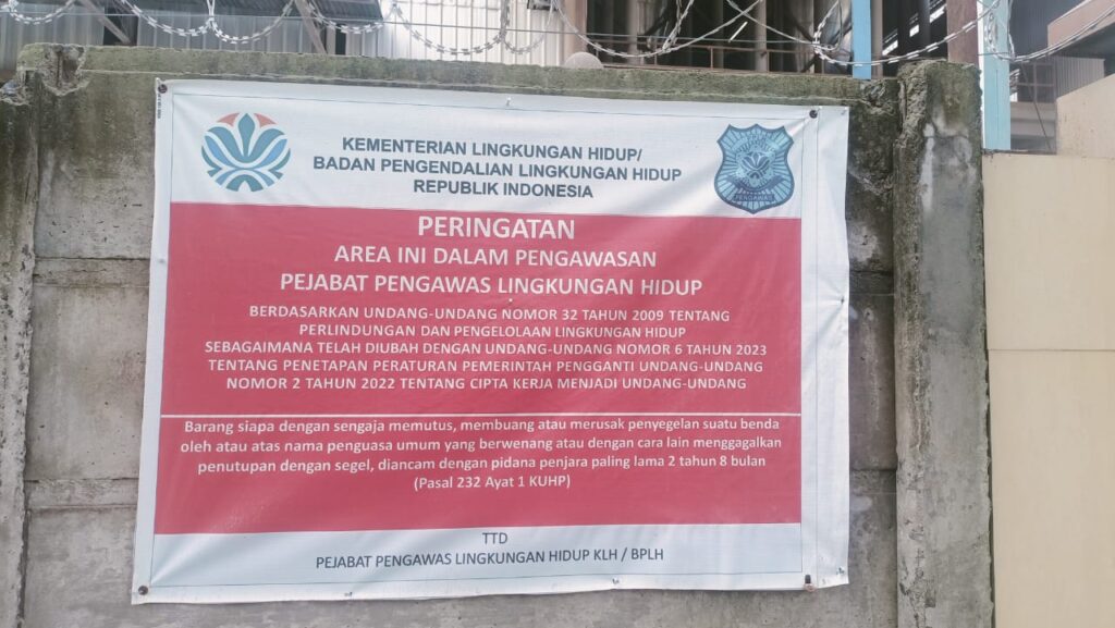 Pengamatan wartawan dilokasi, KLHK menempelkan spanduk dengan tulisan peringatan area ini dalam pengawasan pejabat lingkungan hidup.